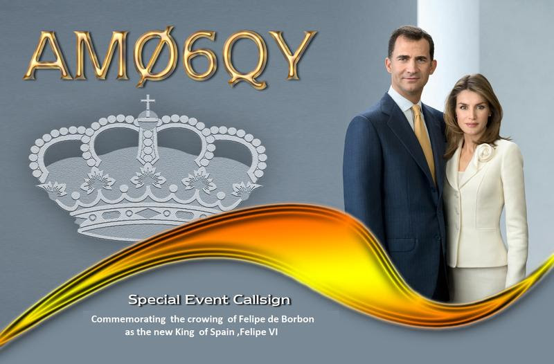 King Juan Carlos I passes the crown to his son, who will ascend the throne as Felipe VI. For this, during the mentioned dates the telecomunication office give to all EA hams permission to use the following callsigns: