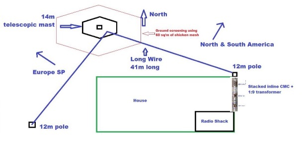 So to give room for exchange of information during QSO, and because ANT farm frequently changing with some ANT become out of use or need of repair or other one added or experimentation, so I will not list all the ANT here except to say they are all home made and usually include dipoles (doublet), end fed inverted L, elevated vertical ground planes (balanced loop radials), L dipoles (verticals with one or more radials), loops, cubical quads, and possibly other beams. Transmission powers are anything from QRP to QRO.