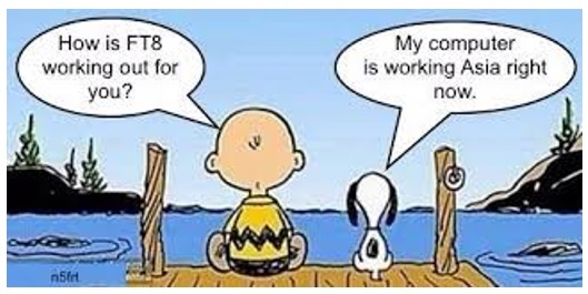 FT8 but thanks no thanks and definitely prefer the man-made modes of operation and ''Pinging'' other stations is not the mode i fancy the most. Basically i use this mode RX only to check the propagation. i am mostly use it as a tool.