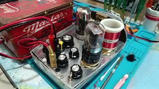 More detail This receiver is using a 6SN7 or 6SL7 double Triode. The AF is using a 6AU7 amplifier
